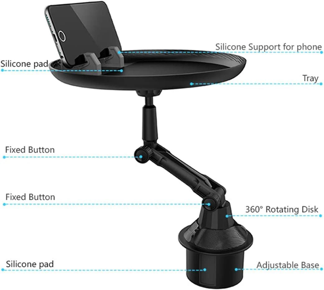 Compatible with Most Car Models: – This adjustable swivel tray is suitable for all most car models and can attach to any standard cup holder hole and locks securely in place. The jointed arms swivels from driver to passenger and may be raised or lowered at will.