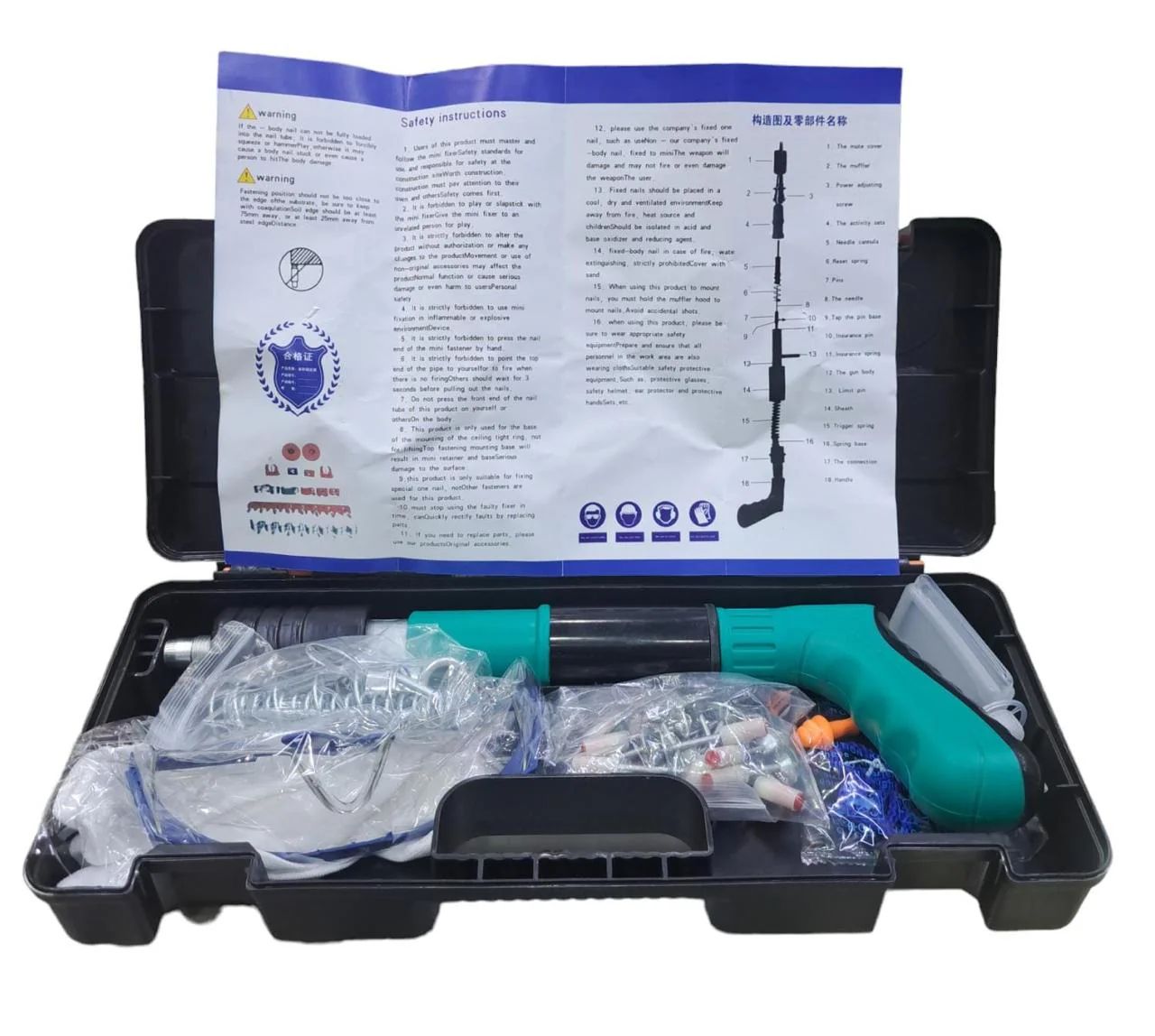 - Convenience: Comes with a plastic box for easy transportation and storage of the machine and nails.