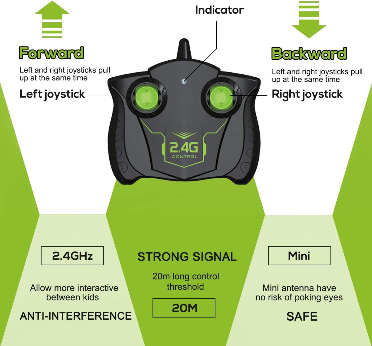 Long Distance & Anti-Interference Transmitter: Equipped with a 2.4GHz wireless remote control, this racing car allows kids to compete with friends without signal interference. The remote control has a maximum distance of about 65ft, providing ample space for thrilling races and maneuvers.