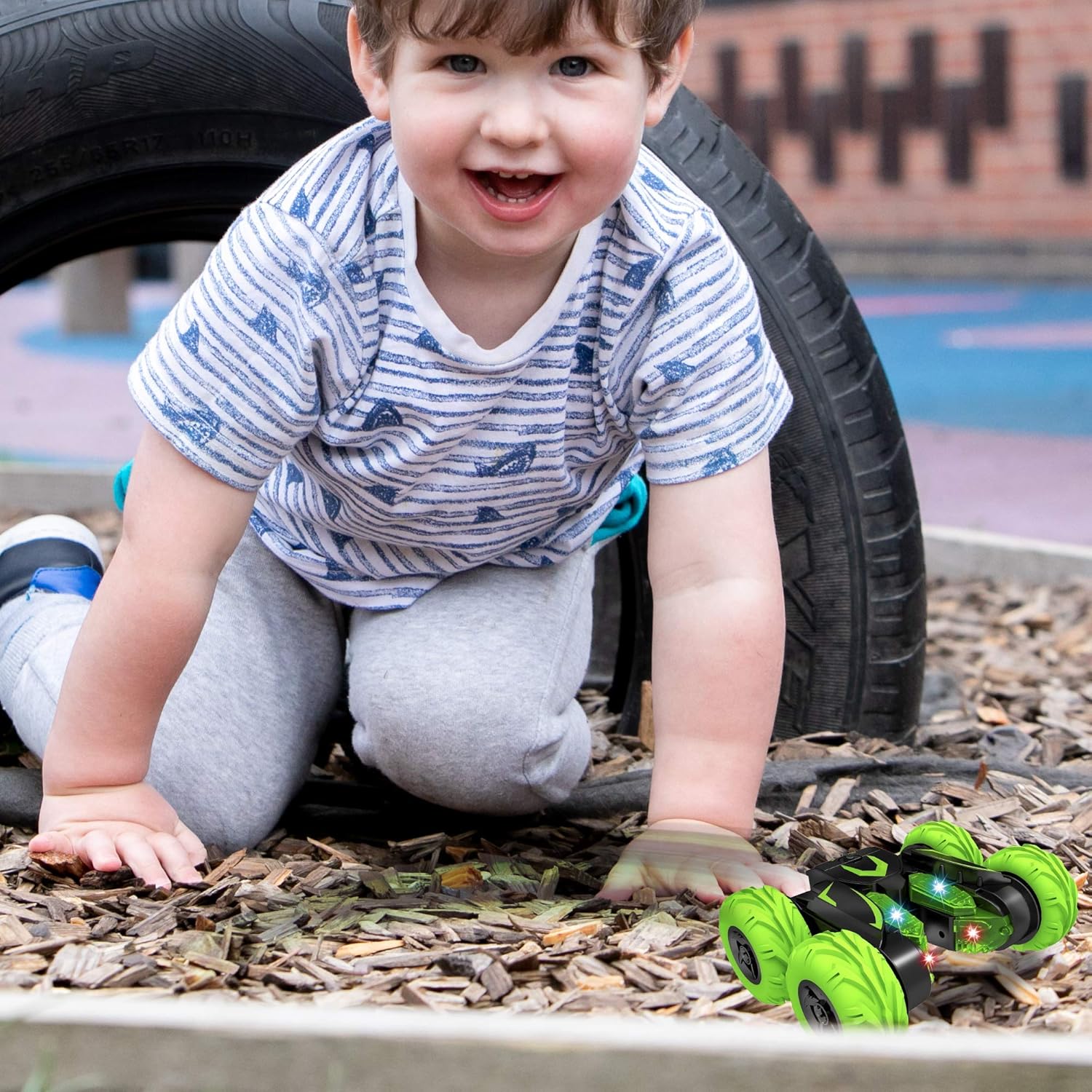 Strong Material & Scratch-Resistant Tires: Crafted from non-toxic ABS material and equipped with flexible wheels, this stunt car is built to withstand collisions with furniture or walls. Special tread patterns provide excellent grip, allowing kids to play on various surfaces like concrete floors, carpets, beaches, park grass, and slopes up to 40 degrees.